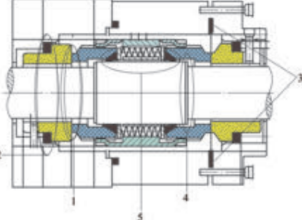 Полный набор механических уплотнений состоит из двух типов уплотнений: динамических уплотнений и статических уплотнений, оба из которых являются незаменимыми. В центробежных шламовых насосах обычно используются двухсторонние механические уплотнения картриджного типа. Имеется 5 двусторонних механических уплотнений. Общая точка уплотнения (см. рисунок ниже). Динамическое уплотнение обеспечивает плотный контакт двух торцевых поверхностей уплотнения для сохранения уплотнения во время вращения. Статическое уплотнение в основном опирается на резиновое уплотнительное кольцо механического уплотнения. взаимодействие между подвижным кольцом и втулкой вала при небольшом перемещении уплотнения.
